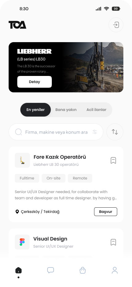 TOA,iş makinesi operatörleri ve firmaların ilan paylaşımı,profil oluşturma ve iletişim kurması için tasarlanmış dijital bir sektörel platformdur.
